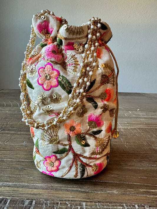 Sold outFloral Embroidery Potli Bag - 5 Pack